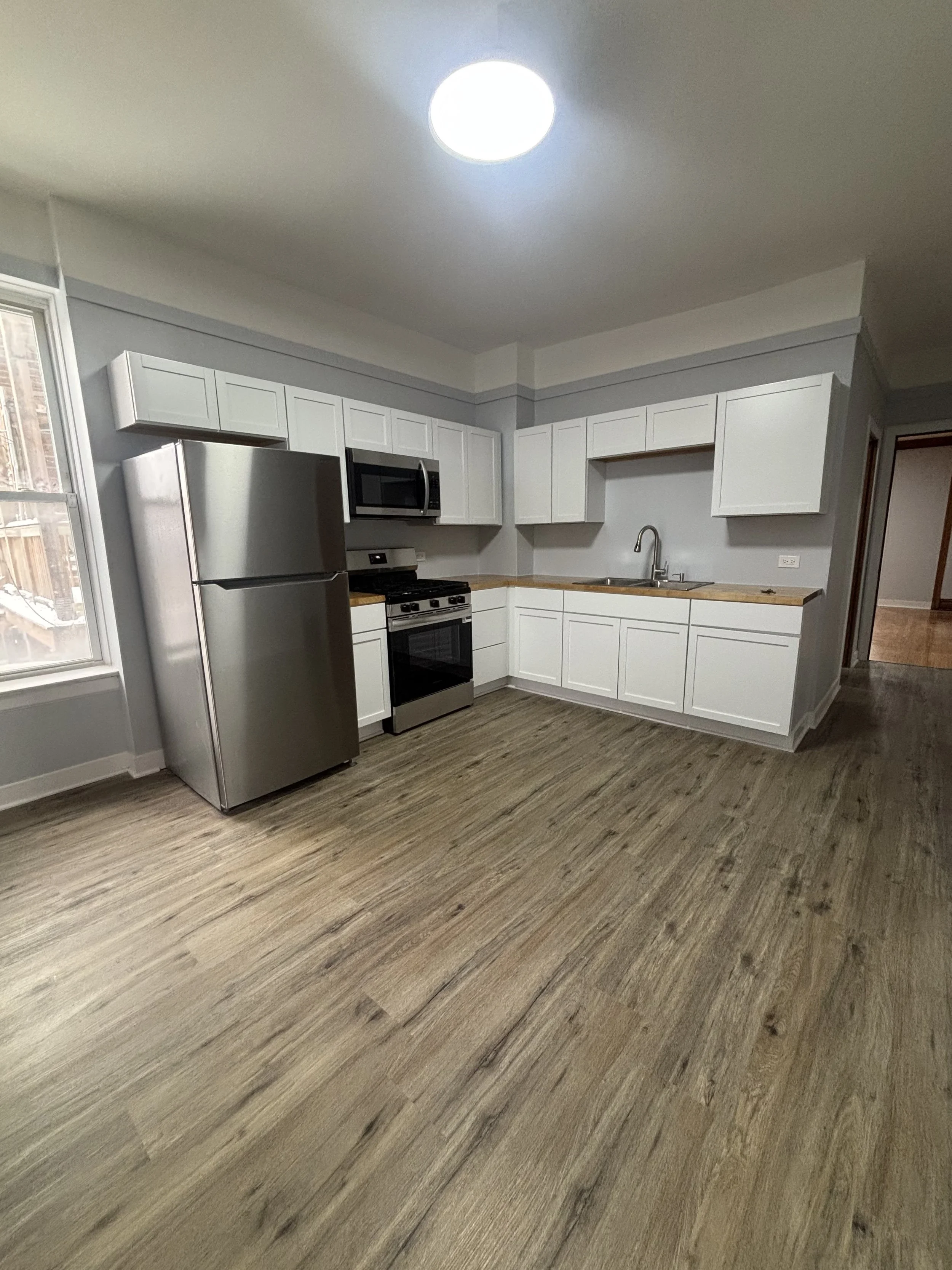 Step into this freshly renovated, privately owned 3-bedroom unit featuring a blend of modern finishes and thoughtfully designed spaces. The updated eat-in kitchen includes butcher-block countertops, sleek cabinetry, and a walk-in pantry, offering both style and storage. A separate dining room provides plenty of space for meals and gatherings.